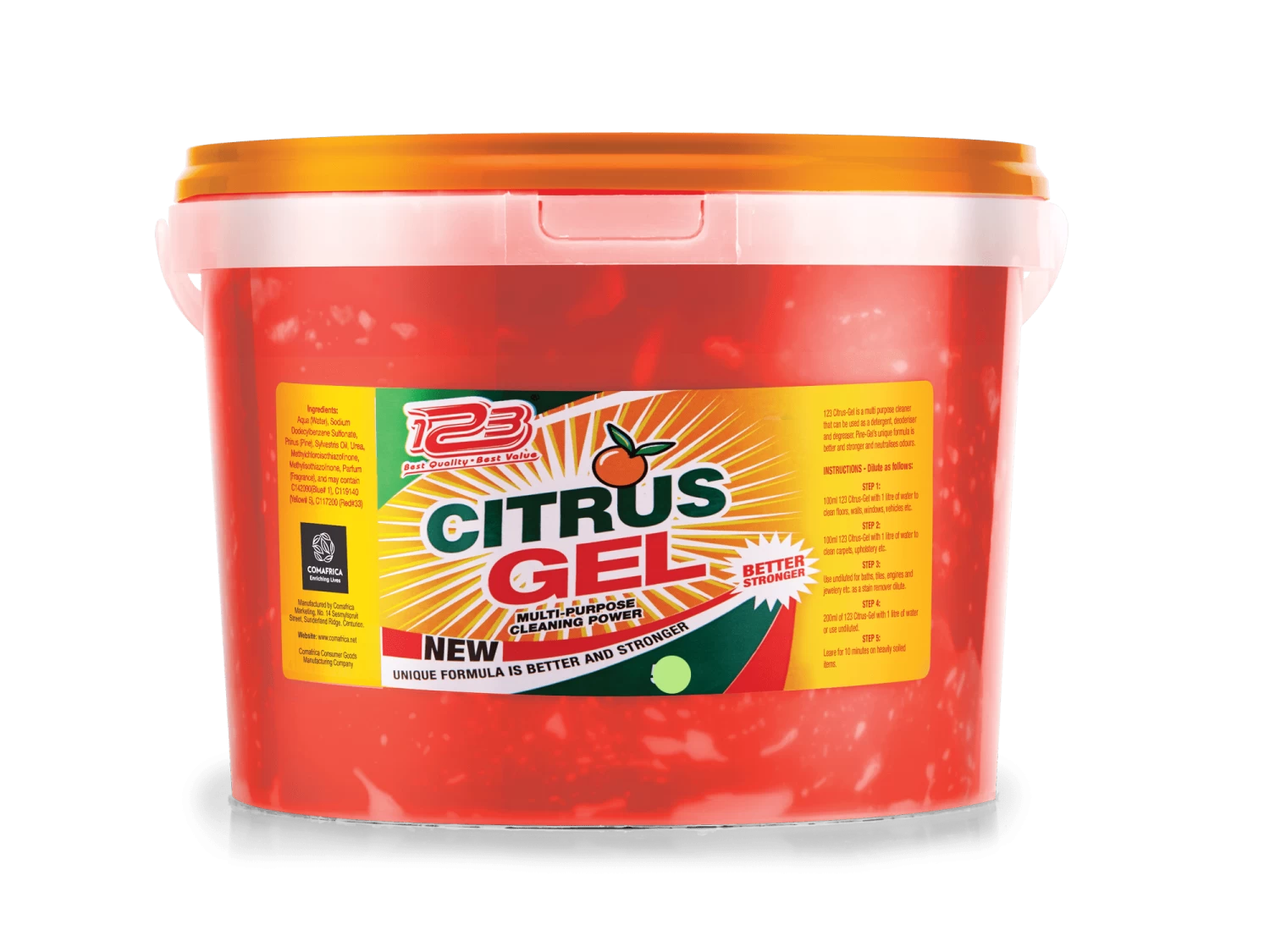 The extra strong formula of the 123 Gel Multi-purpose Cleaner is safe to use on a wide variety of surfaces and designed to cut through grease and grime without tough scrubbing.