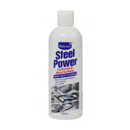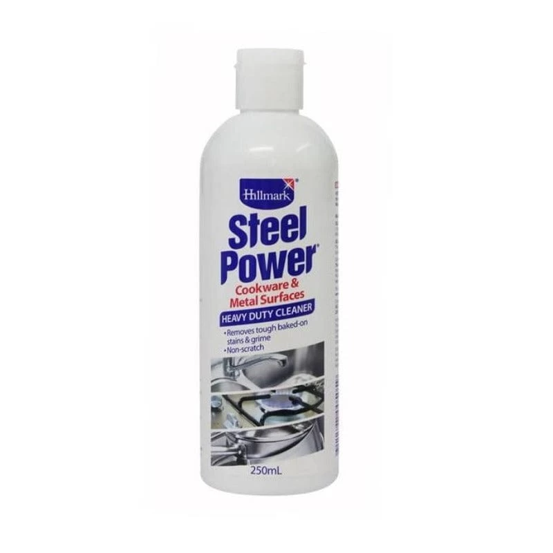 Hillmark Steel Power Stainless Steel Cleaner 250ml for cleaning and shining dull and stained steel.