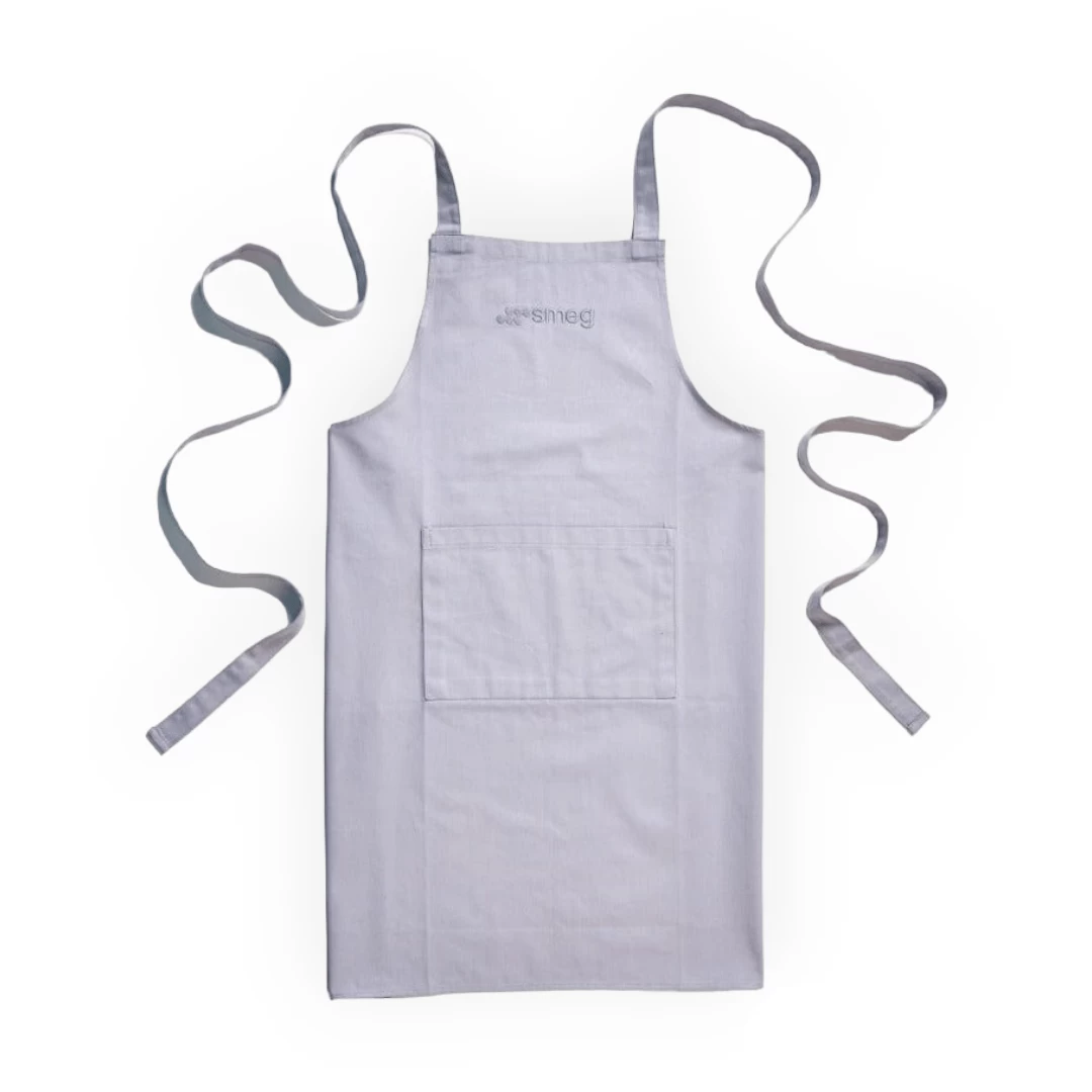 Made from 220 gram 100% cotton • Classic full length bib apron with crossover back design • Adjustable neck strap • Large front pocket for storage • Delicately embroidered Smeg logo • Unisex design • Machine washable for added convenience • Colour range includes vintage cream, pastel blue, mint, pastel pink, light grey and slate grey.